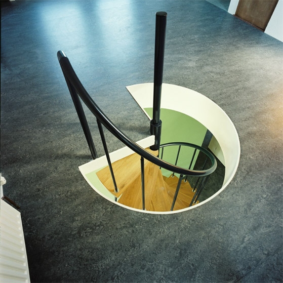 Rondom de bestaande wenteltrap bevond zich een te nauw, rechthoekig trapgat.